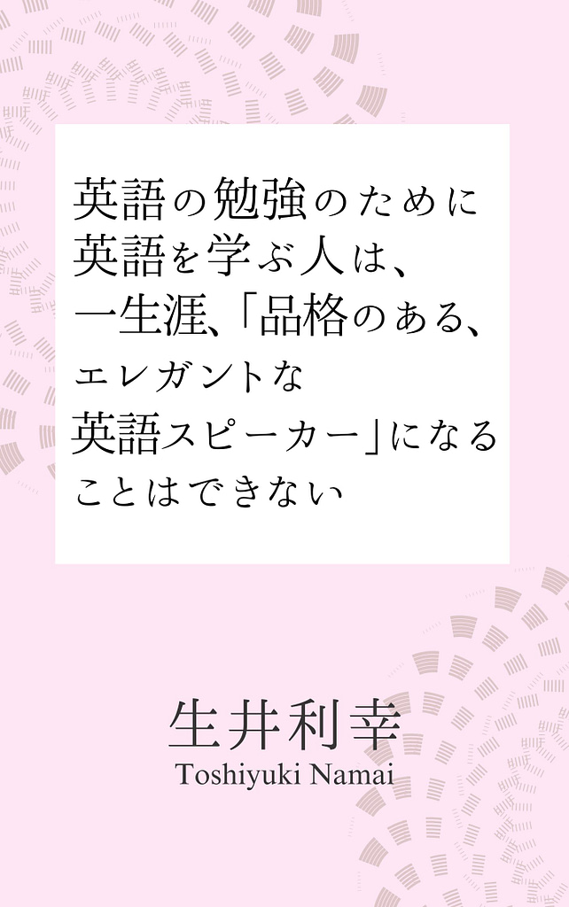 「英語の勉強のために英語を学ぶ人は、一生涯、「品格のある、エレガントな英語スピーカー」になることはできない」著者:生井利幸仕様:A5判、約120ページ、紙書籍発行:ヴォイージ出版発行年月:2025年ISBN 準備中